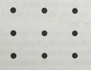 How’d you do? It’s impossible, you say? Can’t be done? Think again. It can be done, but it requires breaking out of your usual way of thinking. Did you consider starting your straight lines only on one of the dots, or did you consider the possibility that the straight lines could extend beyond the figure of nine dots?